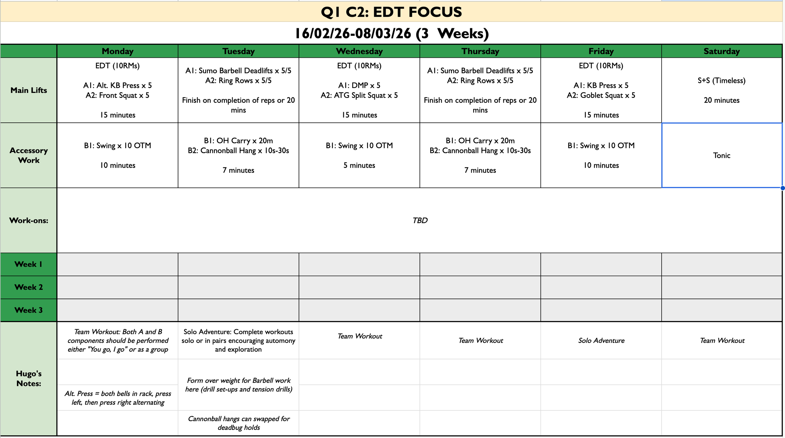 As well as our EDT sessions, we’ll also be honing in some other skills on the side like Sumo Deadlifts as well as some pulling movements like rows and hangs.